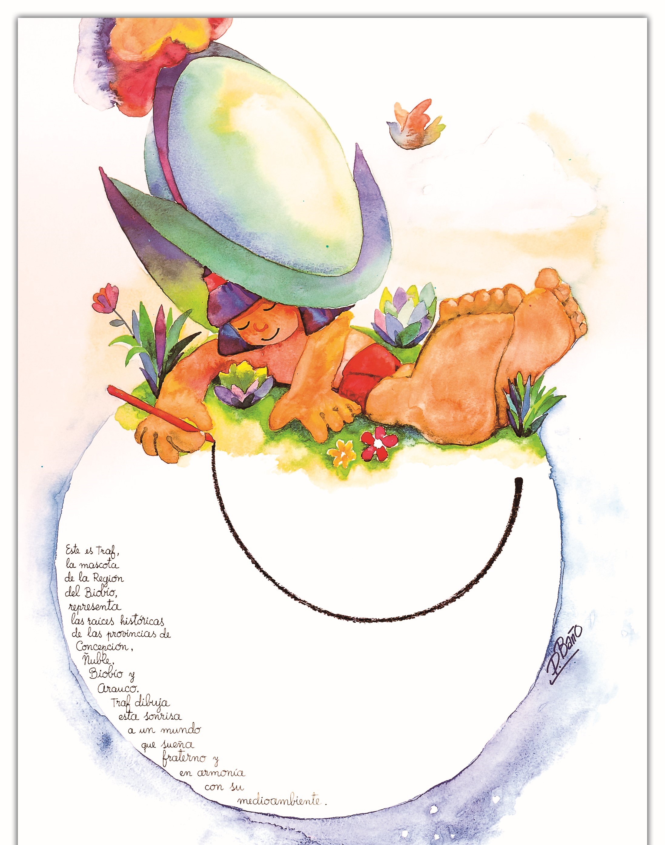 ![]() | «Este es Traf, la mascota de la Región del Biobio, representa las raíces históricas de las provincias de Concepción, Ñuble, Biobío y Arauco. «Traf dibuja esta sonrisa a un mundo que sueña fraterno y en armonía con su mediambiente.» (Leyenda del afiche) Año: 1985 |