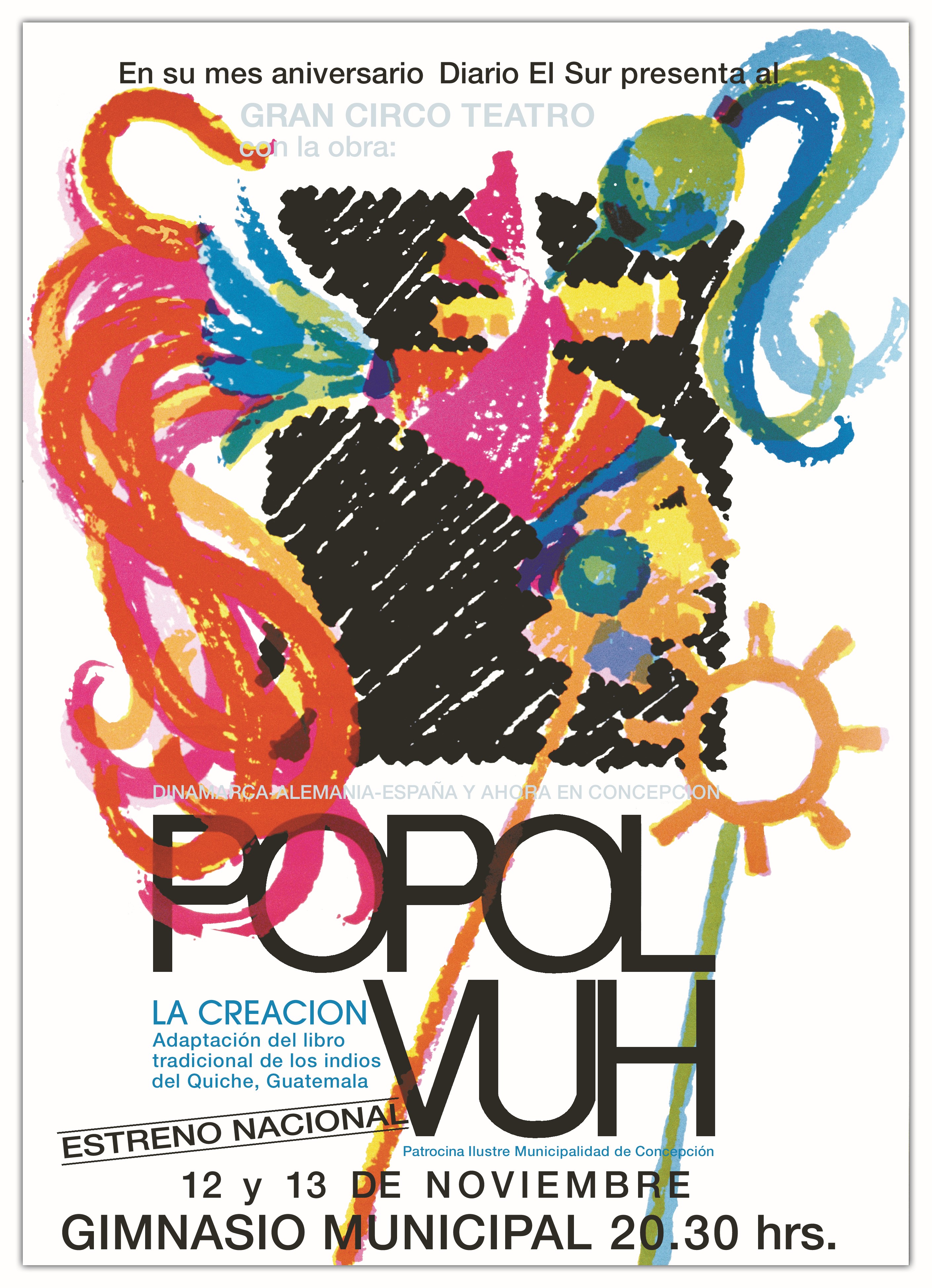 ![]() | Popol Vuh. Estreno nacional de la obra de teatro puesta en escena por el Gran circo teatro. Año: 2003 |