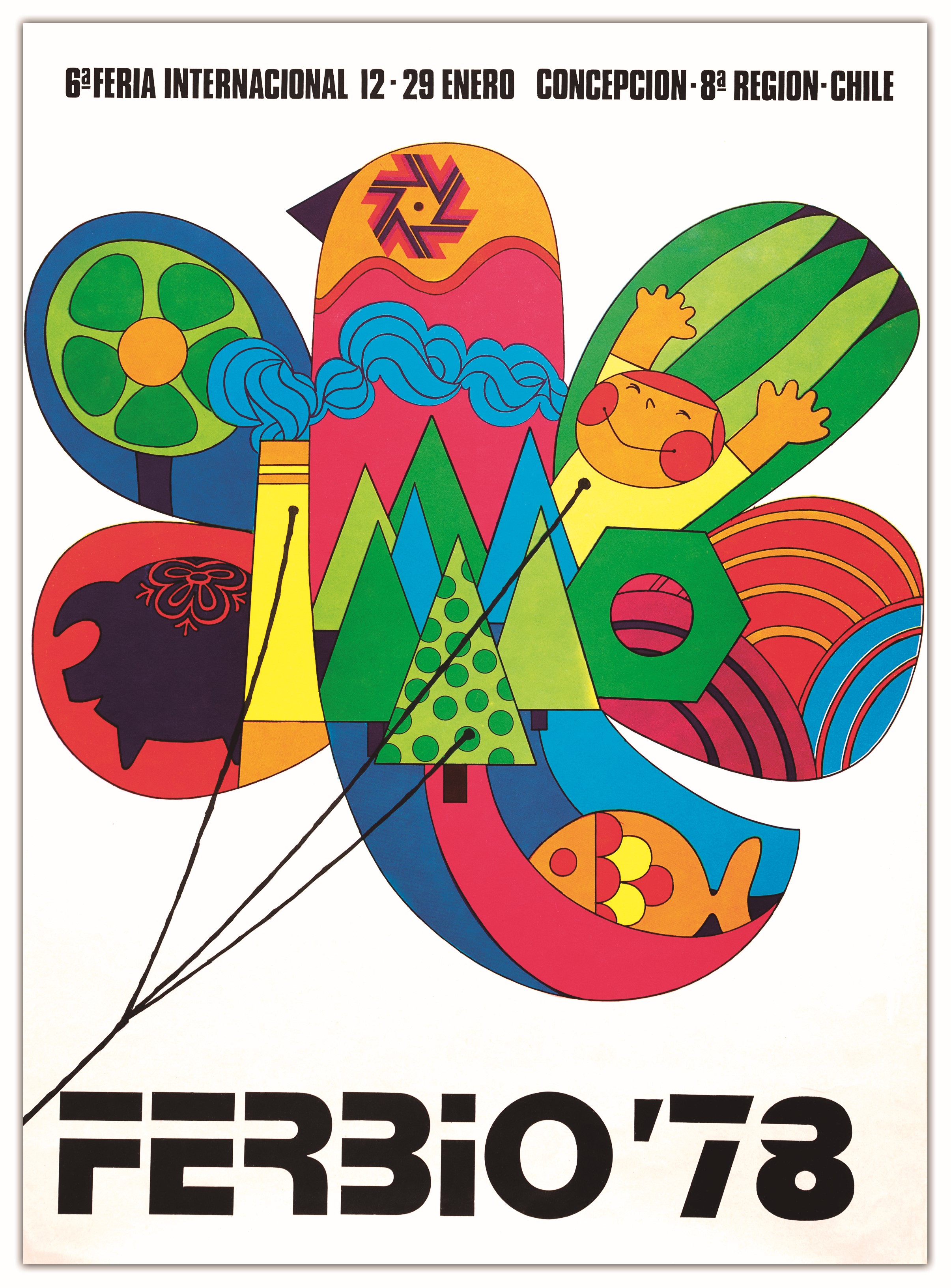 ![]() | FERBIO ’71 Año 1971 Con este afiche del autor da inicio a su trabajo profesional en la Región del Biobío. |